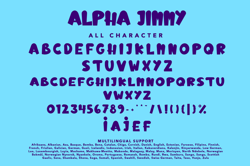 Features : • Character Set A-Z • Numerals & Punctuations (OpenType Standard) • Accents (Multilingual characters) • Ligature